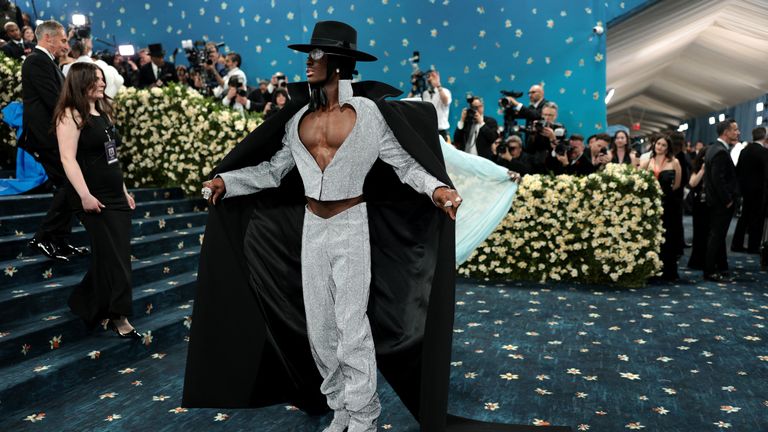 El mismísimo diseñador también recorrió la alfombra ante las cámaras. Para su persona, eligió un diseño que encajaba en el tema al combinar un traje de hombros anchos y pedrería. Más allá, le añade guiños a su procedencia india con los estampados y tipos de joyas.